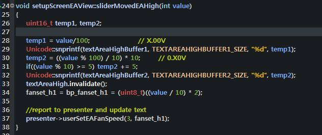 해당하는 ScreenView.cpp에서 Slider에 관련된 프로그램을 작성하여 줍니다.