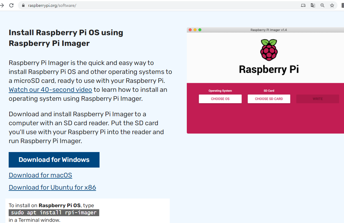 1. 라즈베리파이 공식 사이트에 들어가서 Pi Imager를 다운로드 받는다