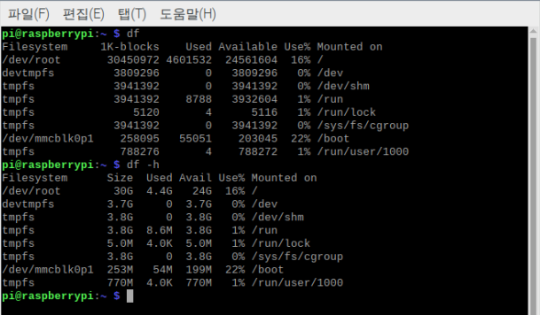 - [라즈베리파이]디스크 사용량, 남은 디스크 용량 확인(df, du) 목차
