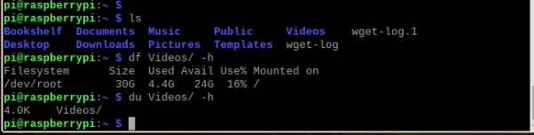 df는 Videos가 속한 파일시스템에 대한 디스크 정보를 보여주고