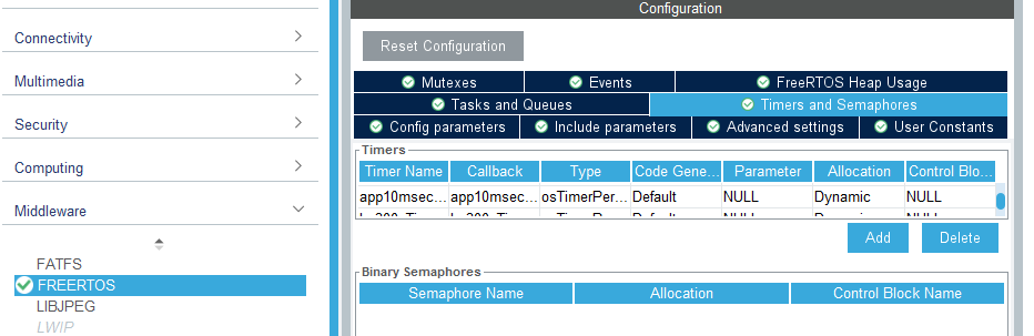 CubeMX에서 FREERTOS -> Timers and Semaphores를 선택한다
