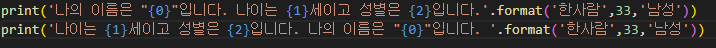 .format을 사용하는 방식과 f_string을 사용하는 방식을 같이 보여드리겠습니다.