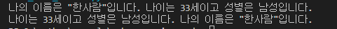 변수에 값을 문장 내에서 출력하는 방법..포멧팅 출력 방식