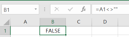 A1 셀에 값이 있음으로 FALSE를 반환합니다