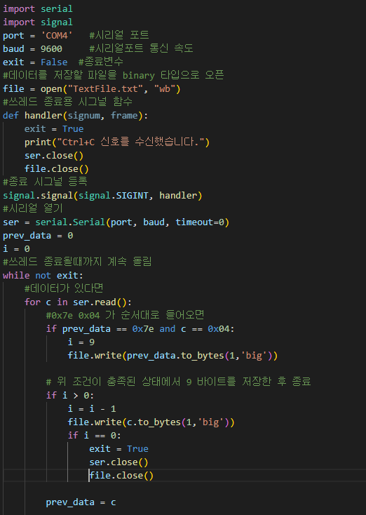 Serial Port를 통하여 데이터를 수신하고 특정 데이터를 만나면 파일에 저장해야 하는